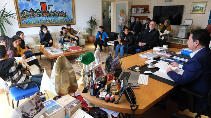 Kent Konseyi Çocuk Meclisi üyesi Bodrumlu çocuklar, Bodrum Belediye Başkanı Ahmet Aras’ı makamında ziyaret ederek çalışmaları hakkında bilgiler verdi.