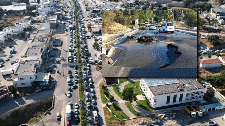 Bodrum’da sorunların giderek artması vatandaşı canından bezdirirken, son olarak su hattının patlamasından dolayı saatlerce kilitlenen trafik, vatandaşı isyan ettirdi.