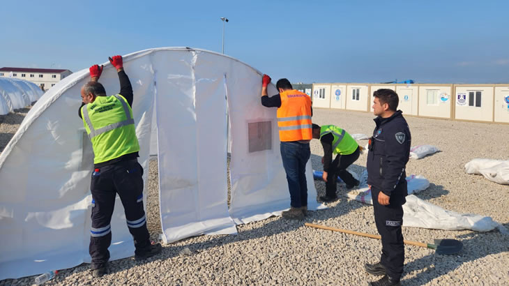 Depremin ilk gününden itibaren gönüllülerin de destekleriyle birçok yardımın ulaştırıldığı Hatay’ın Arsuz ilçesinde barınma kapasitesi artırma çalışmaları sürerken bölge halkı için geniş kapsamlı çalışmalar yapılıyor.