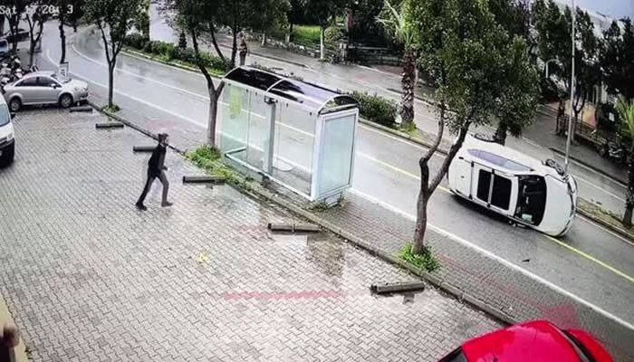 Öte yandan, kaza anı çevredeki bir iş yerinin güvenlik kamerasına yansıdı.