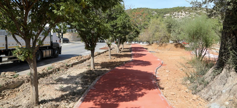 Bodrum Belediyesi Park ve Bahçeler Müdürlüğü ekipleri tarafından toprak dolgusu ve tesviye işlemleri gerçekleştirilirken bir yandan da çevre düzenleme çalışmaları sürüyor. Sulama sistemleri, aydınlatma direkleri, çocuk oyun grupları ve spor aletlerinin montaj işlemleri gibi çalışmaların tamamlanmasıyla, bölgenin ilk yürüyüş yolu, halkın kullanımına açılacak.
