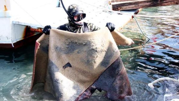 Bodrum'un Gümüşlük Mahallesi'nde yapılan deniz dibi temizliğinde yaklaşık yarım ton atık çıkarıldı.