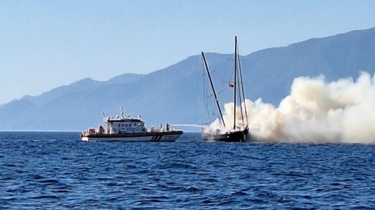Bodrum açıklarında yangın çıkan tekne batarken, 8'i Polonya uyruklu 13 kişi kurtarıldı.