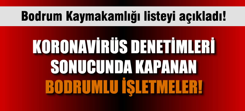 Bodrum Kaymakamlığı, Bodrum’da Kovid 19 denetimleri sonucunda kapanan işyerlerinin listesini yayınladı. İşte kaymakamlık tarafından yapılan açıklama ve o işyerleri;