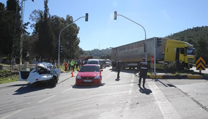 Bodrum Milas yolunda tırın trafik ışıklarında bekleyen araçlara çarpması sonucu 1'i ağır 7 kişi yaralandı.