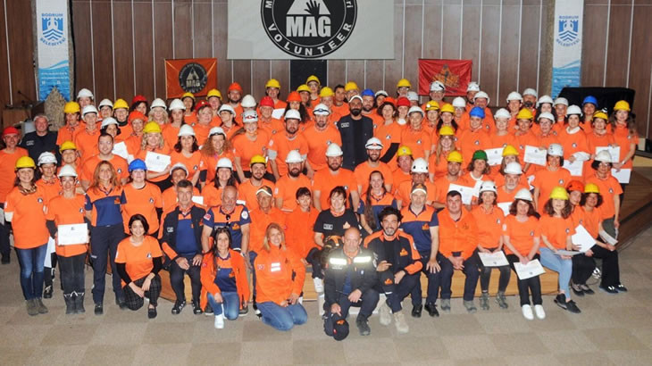 Bodrum Belediyesi destekleriyle Bodrum Mahalle Afet Gönüllüleri Acil Müdahale Derneği (MAG/AMEDER) tarafından gerçekleştirilen üçüncü ve dördüncü etap eğitimler tamamlandı. Eğitimleri tamamlayan 101 gönüllü, yemin ederek MAG/AMEDER tarafından Bodrum'un tüm mahallelerinde oluşturulması planlanan Mahalle Afet Gönüllüleri arasına katıldı.