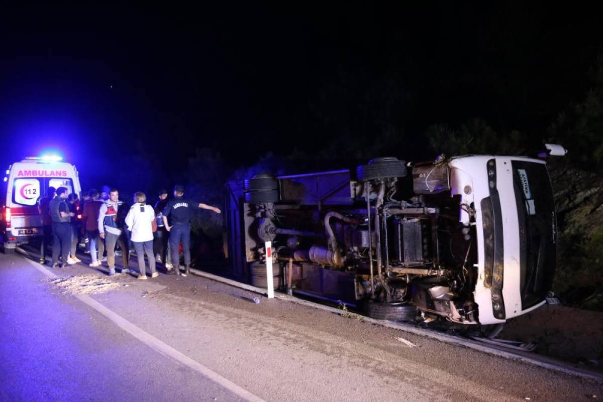 Fethiye'de öğrencileri taşıyan otobüsün şarampole devrilmesi sonucu 22'si öğrenci 25 kişi yaralandı.