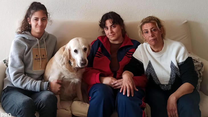Tırnaklarını bileğine geçirerek kendisini yataktan düşüren, Golden Retriever cinsi köpekleri 'Asil' sayesinde, 3 kızıyla birlikte enkazda kalmaktan kurtuldular