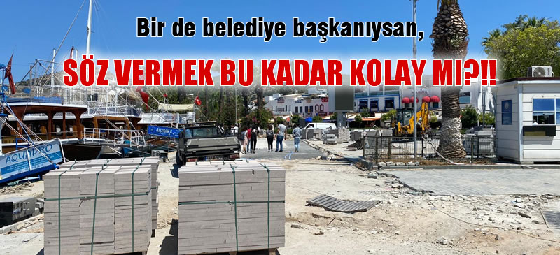 Muğla Büyükşehir Belediye Başkanı Osman Gürün geçtiğimiz hafta yaptığı Bodrum ziyaretinde Bodrum Limanı’nın 15 Haziran’da hizmete gireceğini açıklamıştı. Bırakın hizmete girmeyi şu anda çalışma bile yok. Tepkiler büyük. Vatandaşlar bir belediye başkanı bu kadar kolay söz vermemeli diyor.